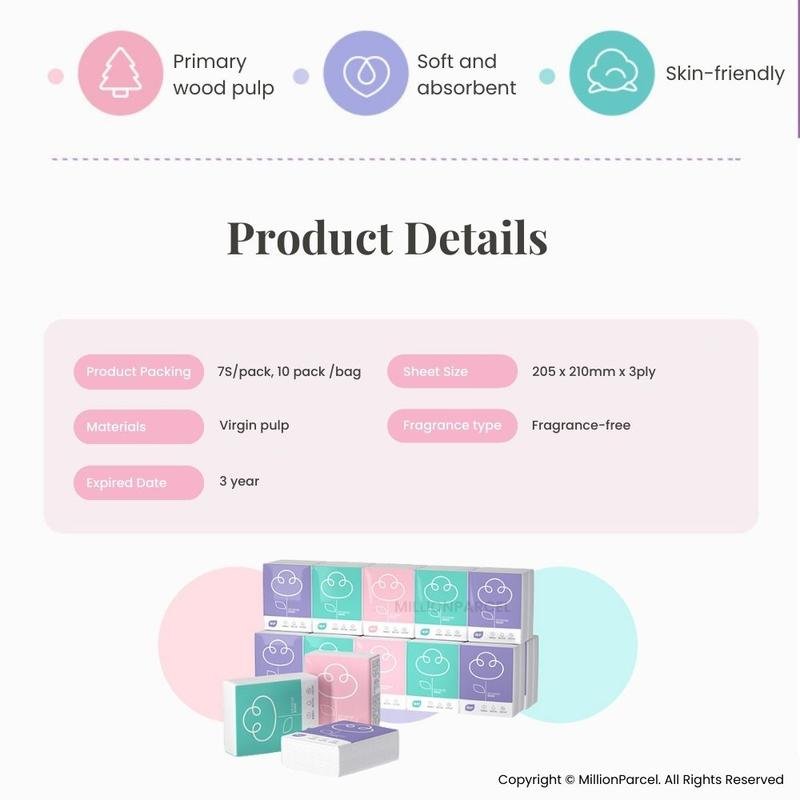 Botare Pocket Tissue | Small Tissue Paper | Facial Tissue | Travel Tissue | Skin Friendly | 3ply x 7S x 10pack
