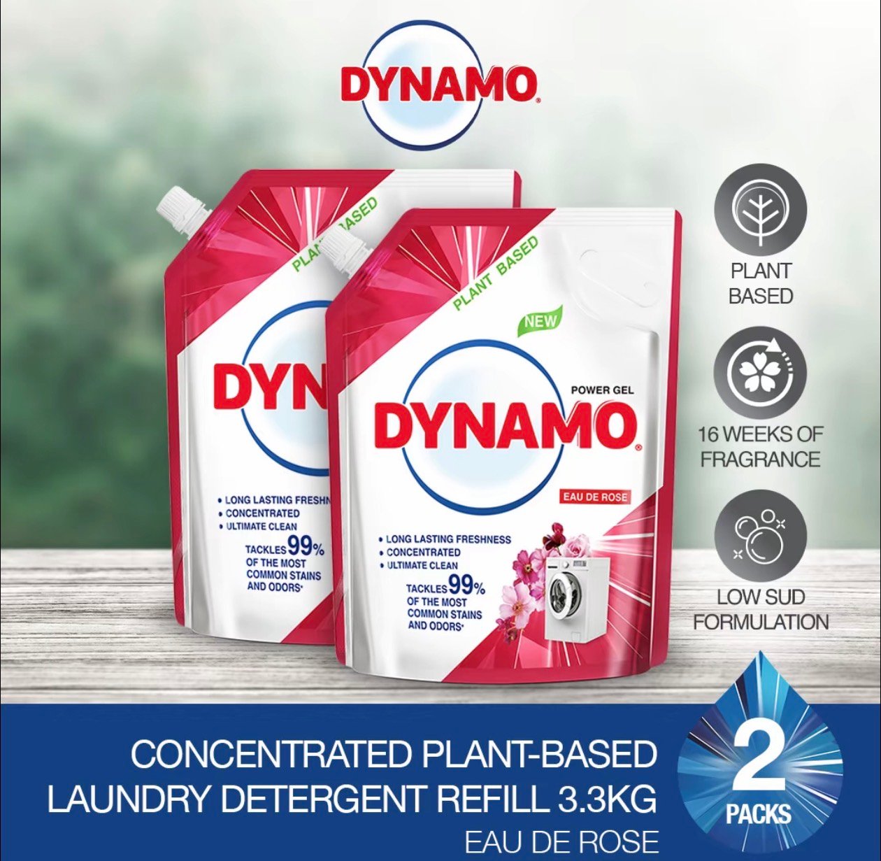 DYNAMO Plant Based Laundry Liquid Detergent Refill 3kg/3.3kg x 2 Packs