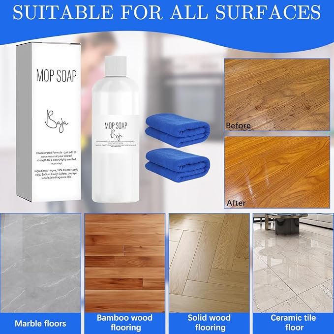 - 【Long-Lasting Fragrance】Infused with a luxurious, long-lasting scent that lingers after cleaning for a pleasant aroma. This mop soap for floor cleaning will make you want to clean your floors, because it smells so great